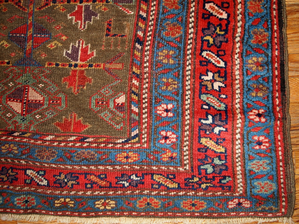 #1B415  Hand made antique Persian Kurdish rug 4' x 7.6' ( 122cm x 231cm ) 1880.C