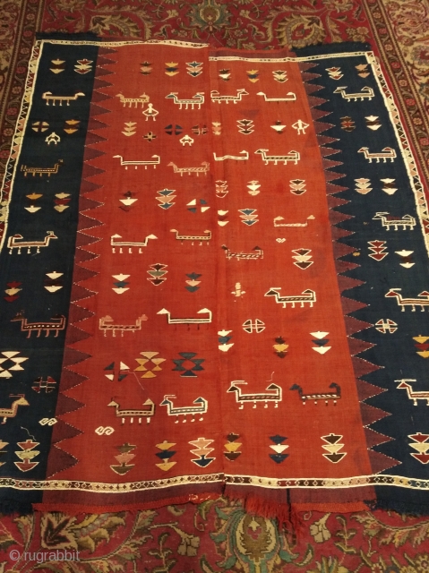Antique Karabagh Verneh, mid 19th century, very good condition. Size ~170x190cm. Wool on wool, all natural dyes, whites are cotton.