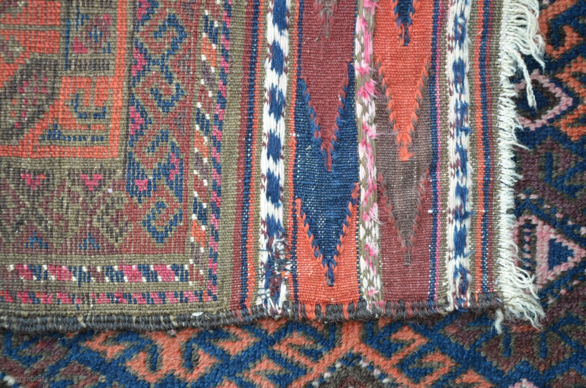 Baluch 238 x 125 cm, worn, but still loveable and ready to put on the floor.