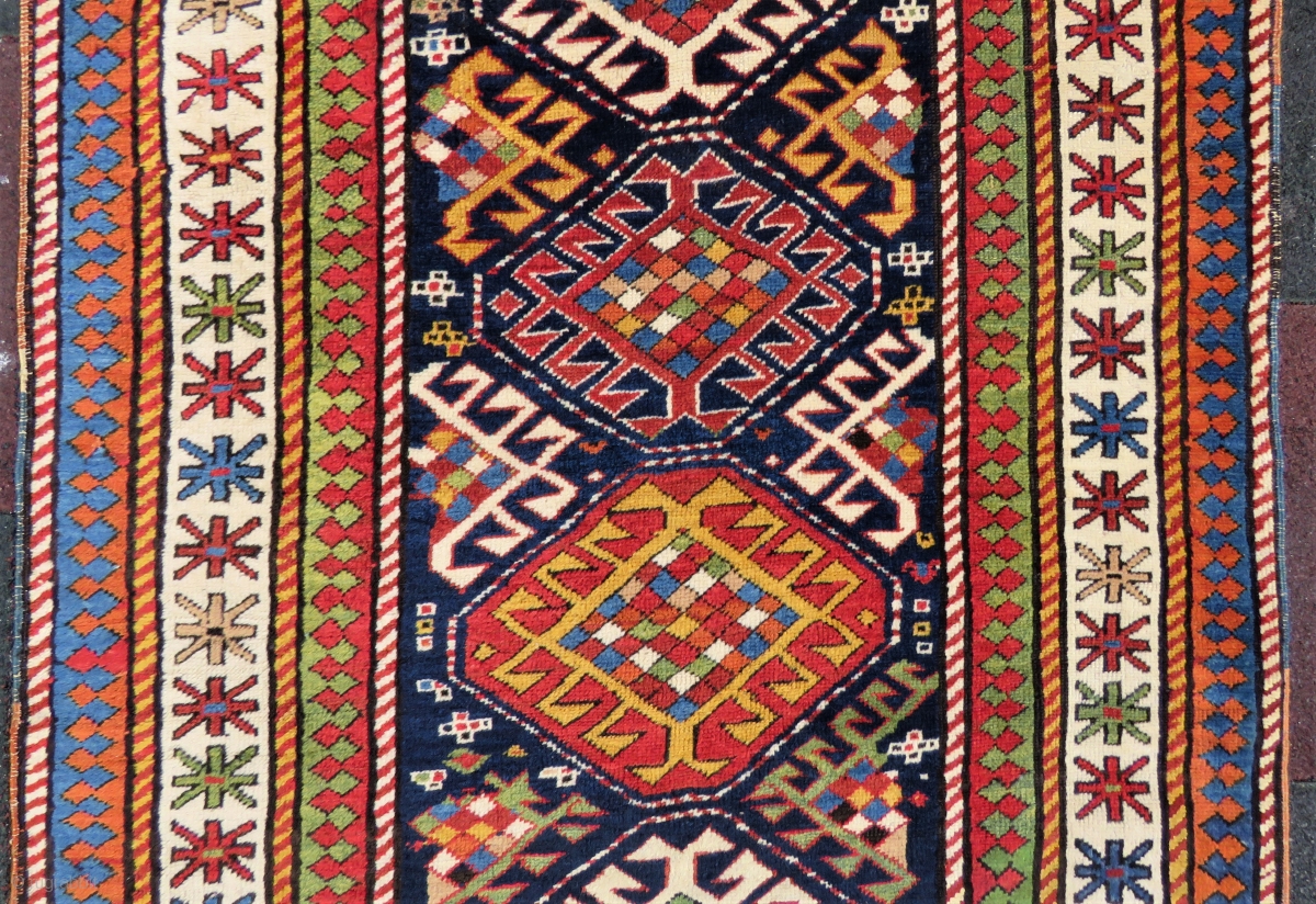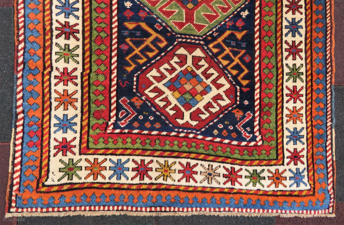 Genche Kasak rug wonderful colors and very good condition all original size 3,72x1,06 cm and Circa 1870-1880