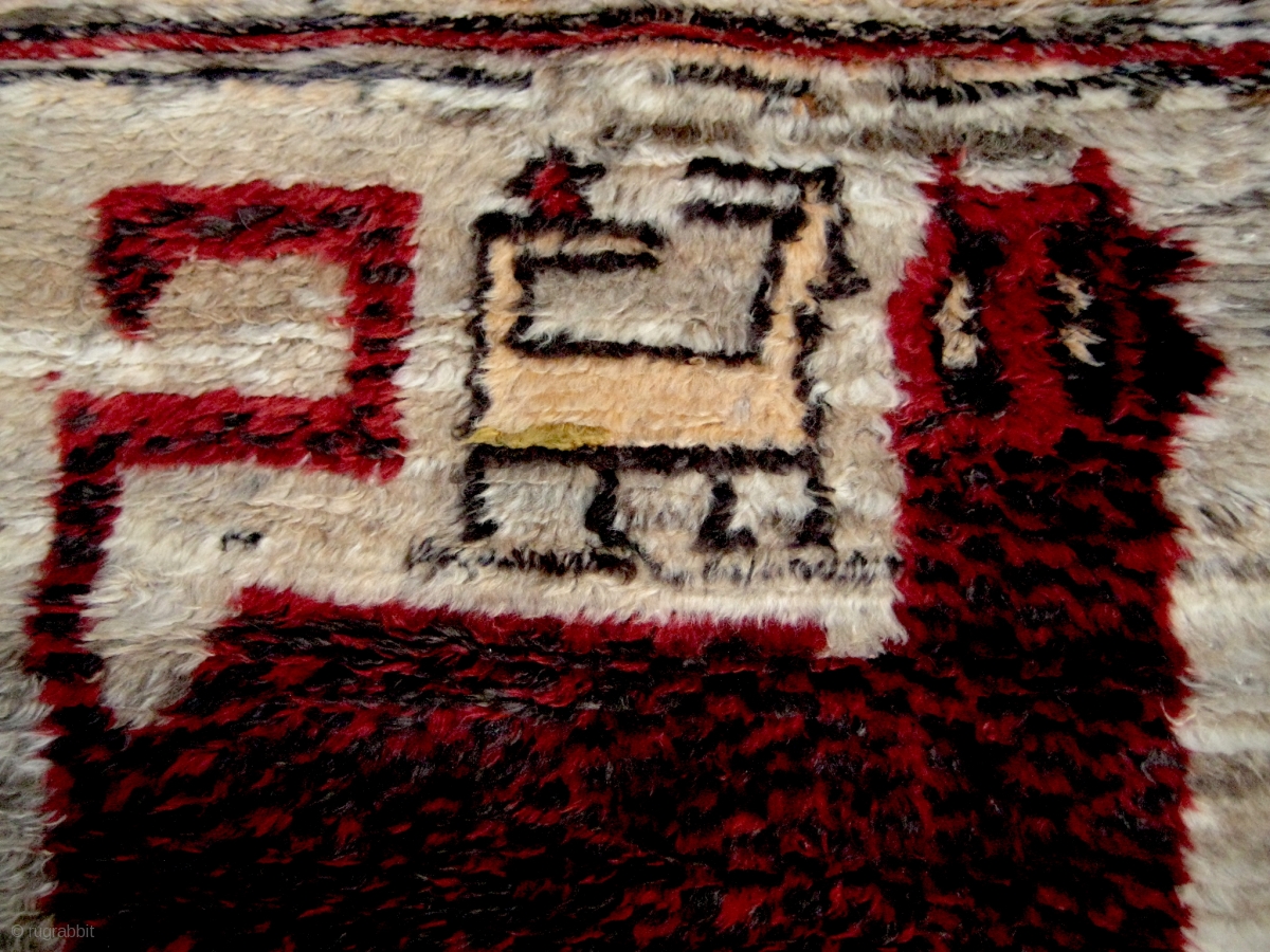 Qashqai lion gabbeh; very long soft pile, 1.40 x 1.15 m. Early to mid 20th century; excellent condition.