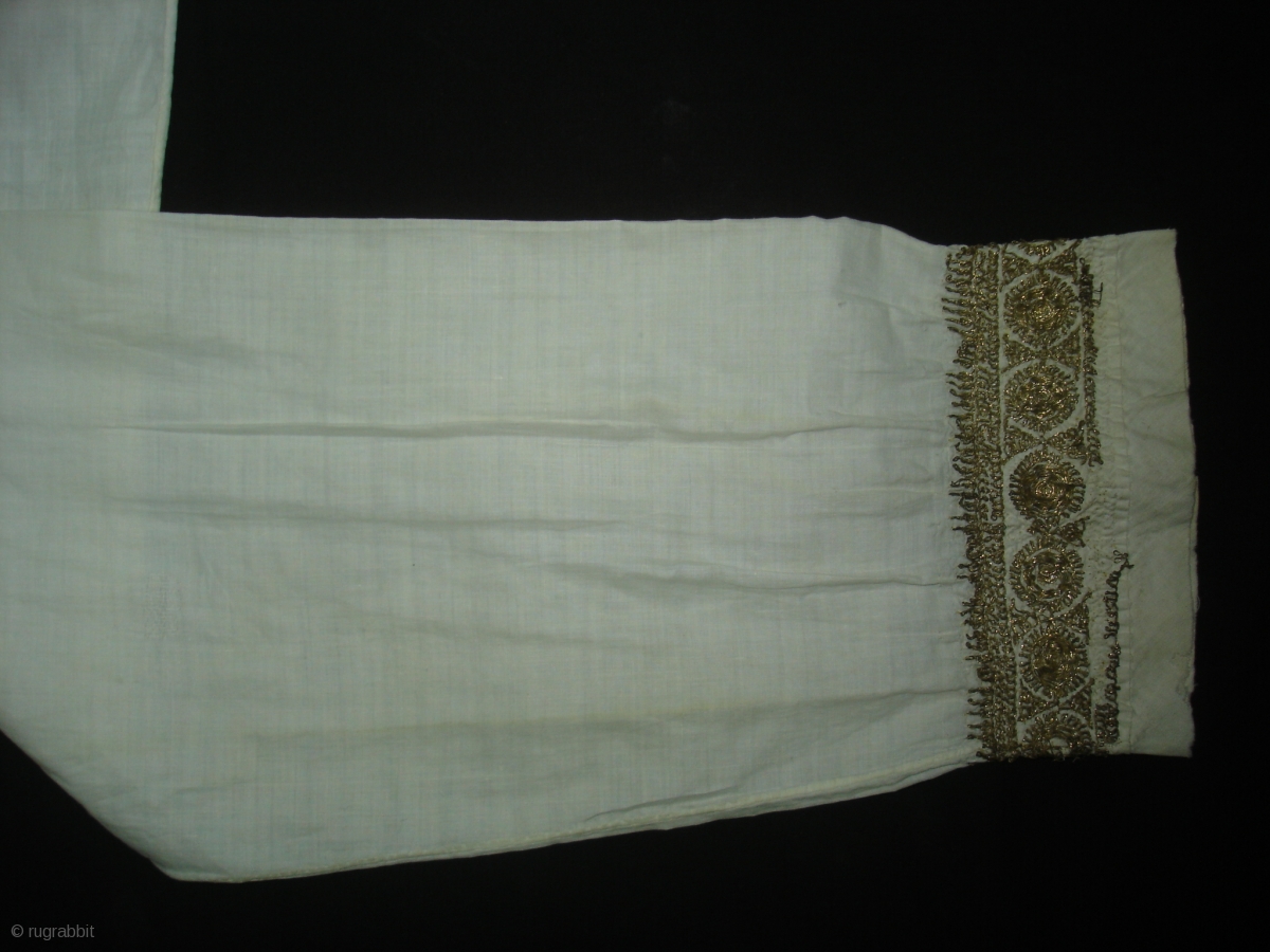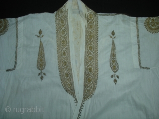 Man's robe(angarkha),Zari (real) embroidered on muslin cotton,From Deccan South, India.Its size is L-108cm,S-16X64cm,Around circle size is 226cm.