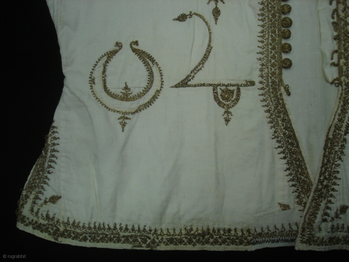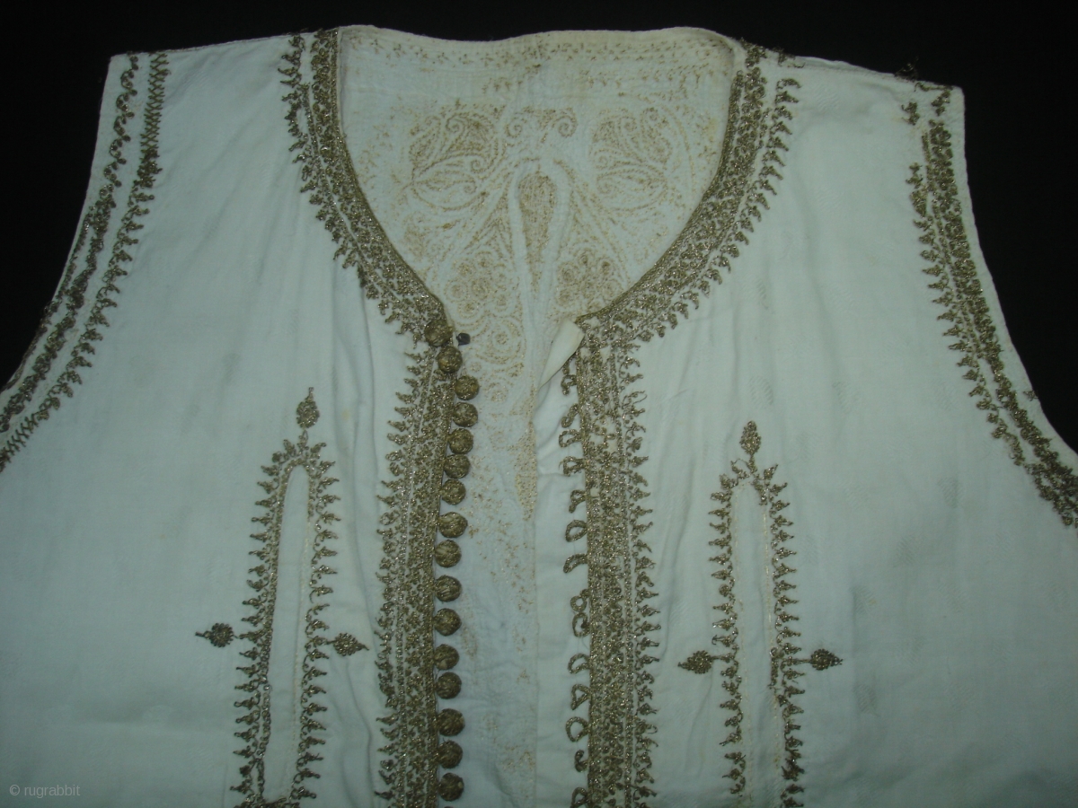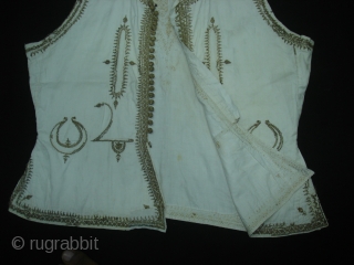 Man’s waistcoat(Sadri/Bandi),Zari (real) embroidered on muslin cotton,From Deccan South, India.Its size is L-46cm,W-46cm. Its set with Man's robe(angarkha)DSC06946 New.