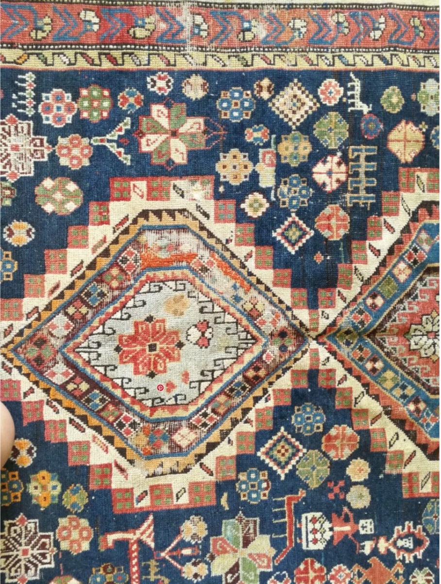 Antique caucasian shirvan rug, circa 1900, size 132×104 cm.