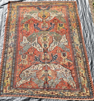a good antique Caucasian Kuba Sumak carpet with extremely rare and sought after Dragon design. Finely made with crisp natural dyes. Some high quality repair, exceptionally clean and floor ready. 298x201cm