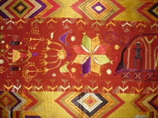 Phulkari From East(India)Punjab India.Known as Sar Pallu Phulkari. Showing the Folk Culture of Punjab.C.1900. Its Size is 128cmX230cm(DSC03935 New).