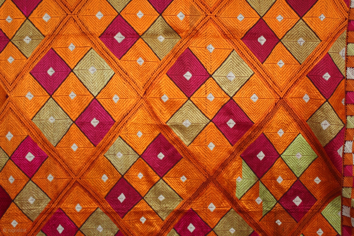 Phulkari from East (Punjab) India Called As Suraj Mukhi Bagh.Very Rare Pattern.Extremely Fine Phulkari.(DSL02450).