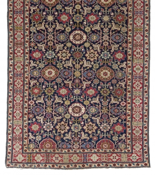 "This fine Afshan rug is from the Shirvan district in the Kuba region of the northern Caucasus. The term ‘Afshan’ refers to a particular design which is derived from Persian and Indian floral and arabesque sources of the 1600s and 1700s, rather than a group of people or a geographical area. The Afshan pattern was a favourite of workshop weavers in the northern Caucasus in the 1700s, when carpets of this size were probably made on commission for palaces and other wealthy households.