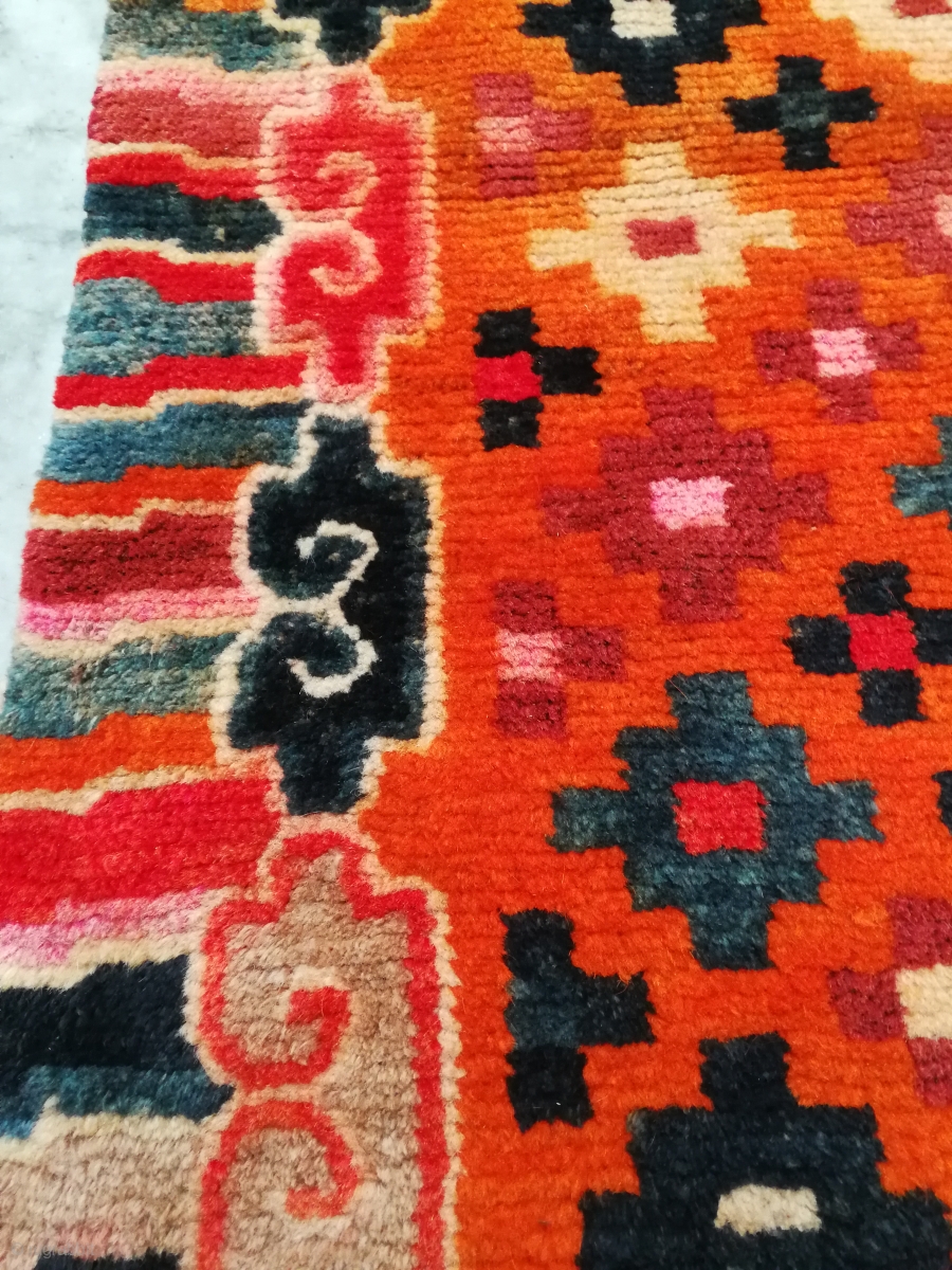 Beautiful Tibetan Khaden in very Good condition. In the center it features , Tigma design surrounded by cloud/wave border, with multi color.