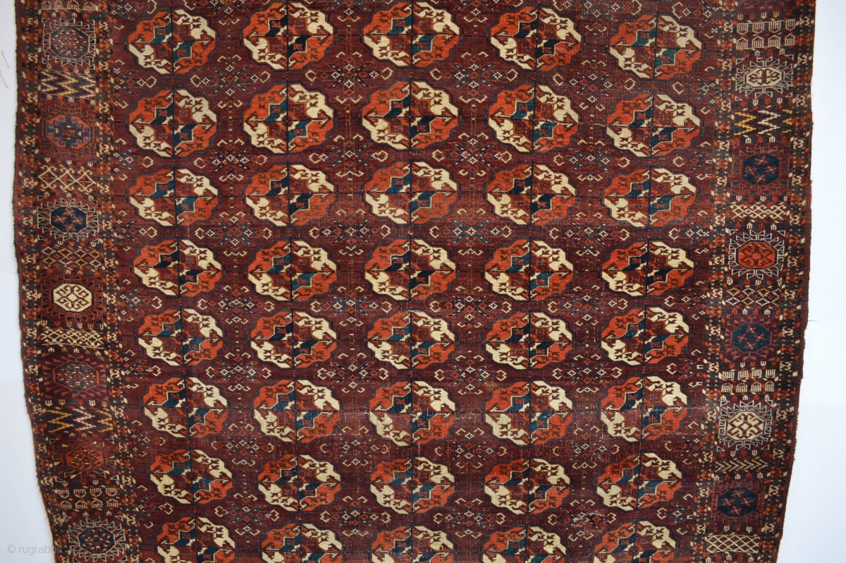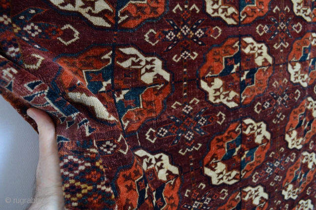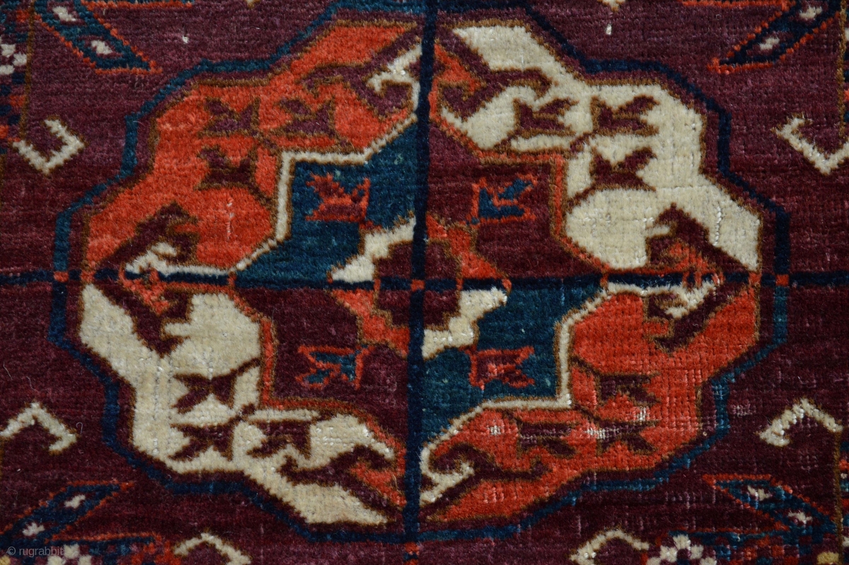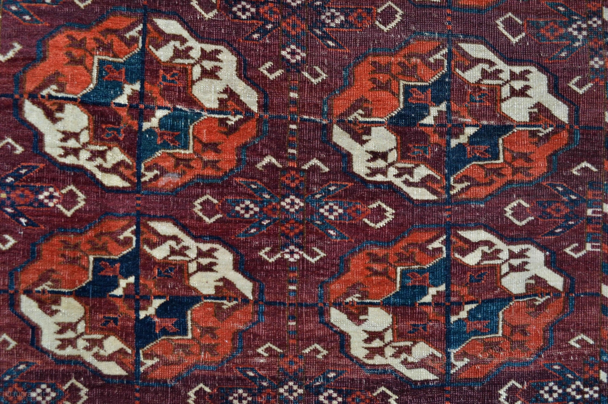 Beautiful strong saturated squarish mid 19th century Tekke turkoman with very actractive mainborder, great/ big ornaments with stunning paterns