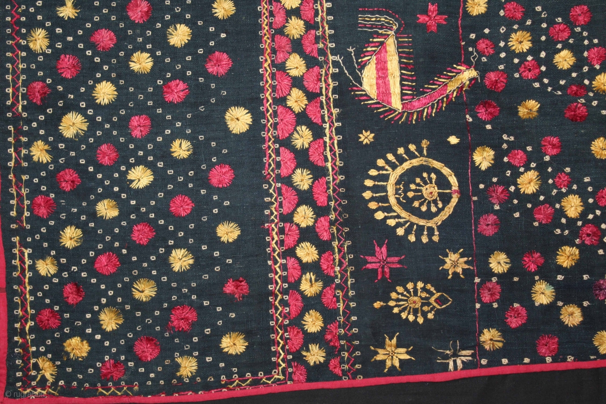 Indigo Sainchi Phulkari From East(Punjab)India.C.1900.Rare Design.Proper Shahkot Moga District of Punjab India.Extremely Fine Phulkari.(DSE02520).