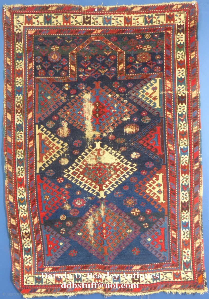 Antique Caucasian Prayer Rug, c. 1875-1900, Interesting but worn.