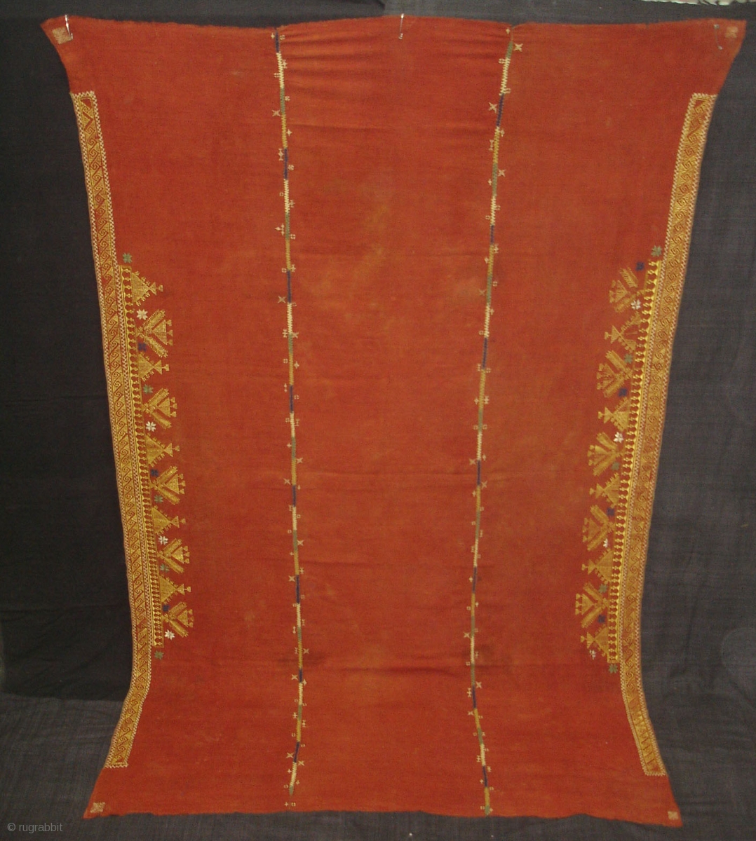 Rare Kind of Chope Phulkari From East(India)Punjab, India.C.1900.Cotton Khaddar Fabric,Silk-Floss Threads Stitches,Its size is 140cmX218cm(DSC00233).