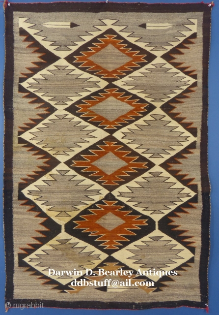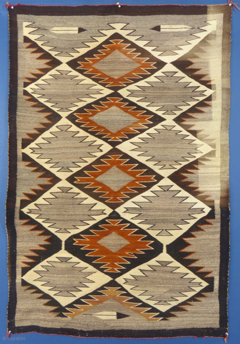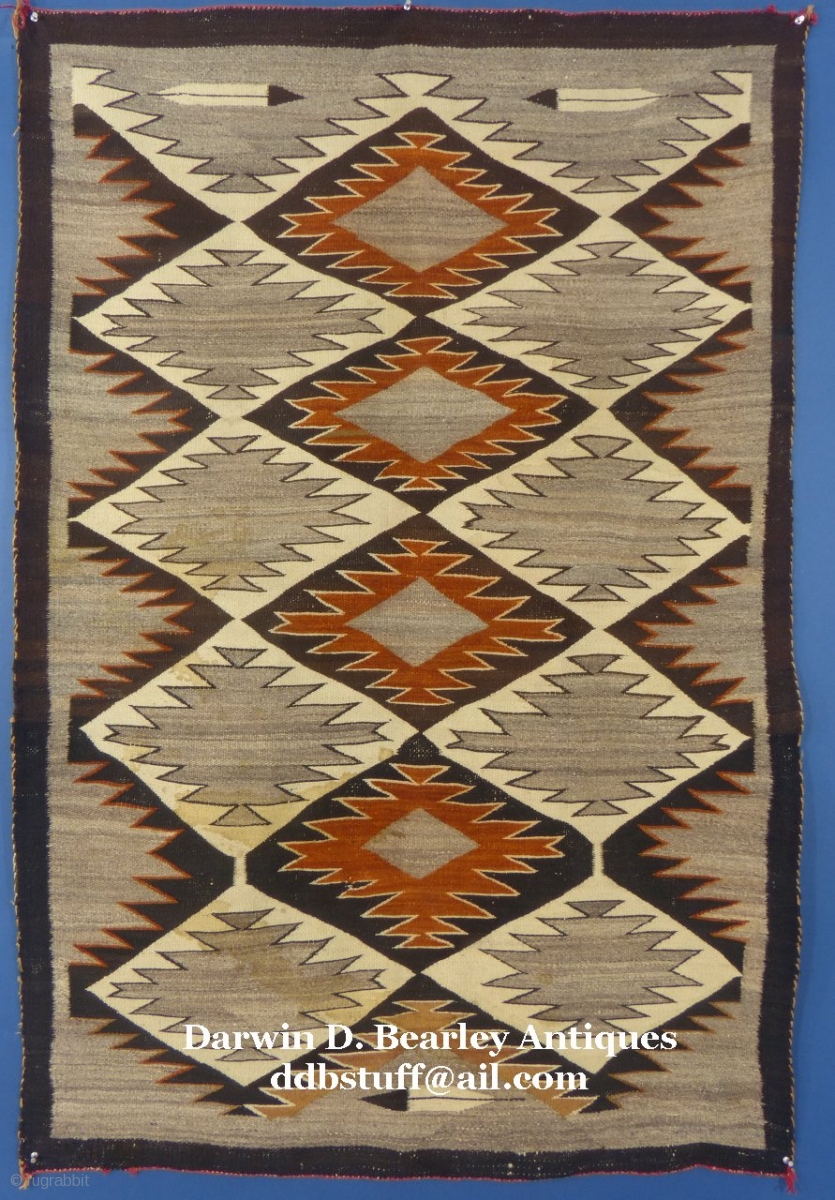 Navajo Regional Weaving, c. 1915-25, 66" x 44", Very Good Condition but it does have t stains on the good side and fade on the other side (see pictures)