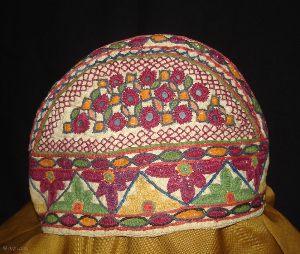 Ceremonial Baby's Cap(Topi),From Tharparkar Pakistan. Belongs to Sodha Rajput Group.C.1900.Cotton embroidered on the cotton(DSC09039 New).