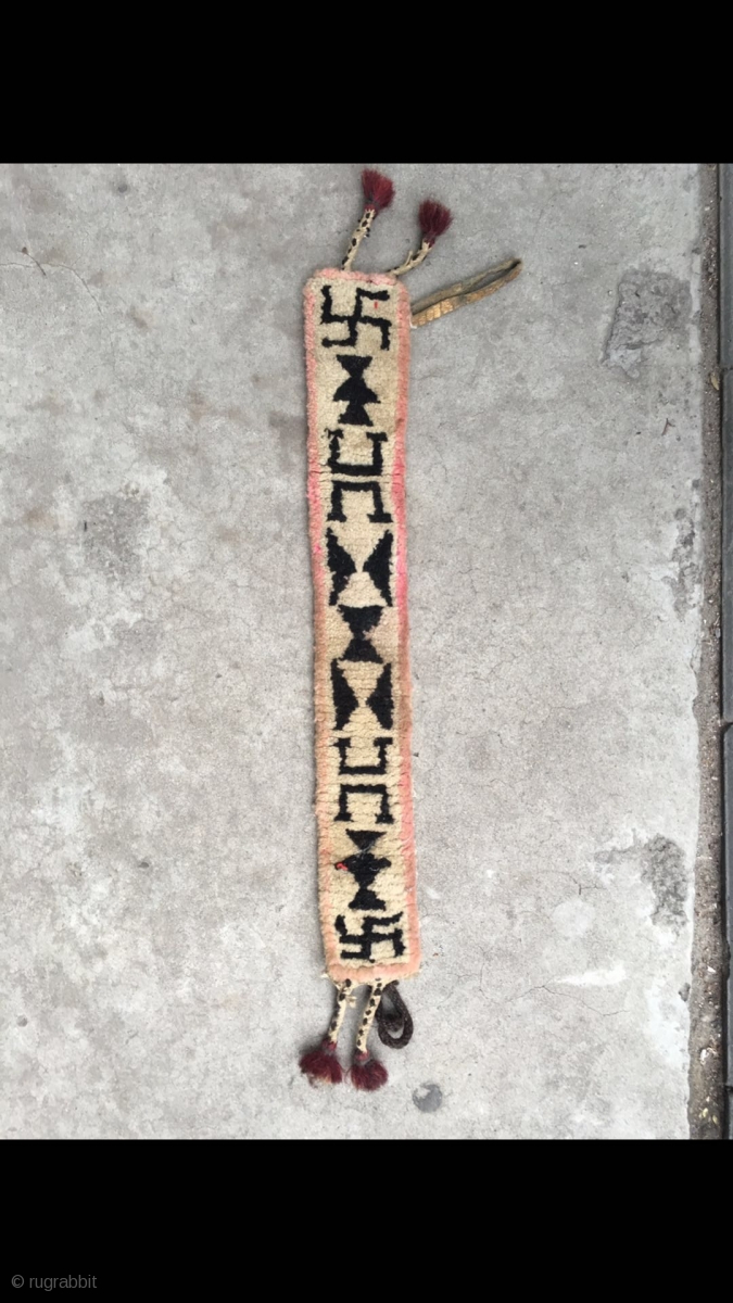 Tibetan wool belt, Teeth white background, geometric pattern. Wool warp and weft. Size 65*8cm