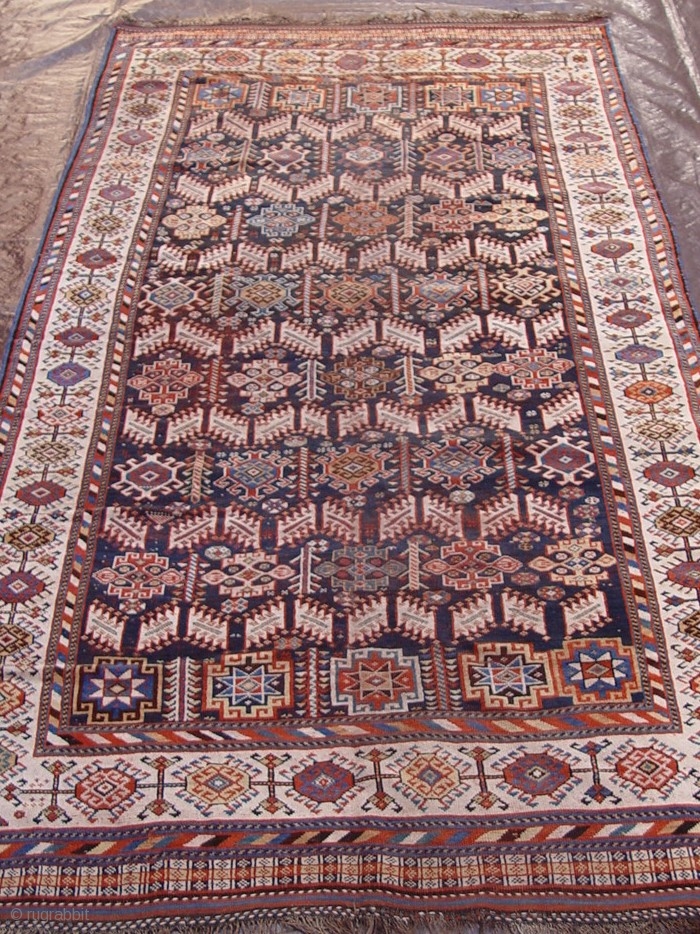 Antique Persian Qashqai tribal rug, circa 1880's or older, 5'6" x 10'4" ft. blue background, some minor areas of lower pile, no restorations.