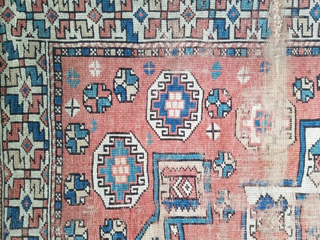 Bergama - about 65" x 65". Lots of wear but still nice example of early rug.