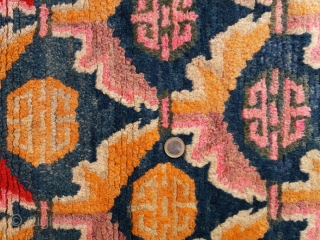 Very nice old Tibetan rug, very early 1900, very pleasant colors, very nice and soft wool, very unusual small size (circa 113 by 49 cm), very good condition (no repairs, full pile), very good price...