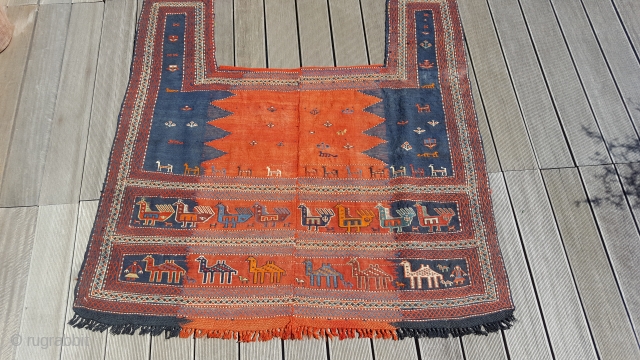 Beautiful Caucasian verneh horse saddle cover ,ca. 1910 ( swiss dealer certificate 2007)with 3 caravans