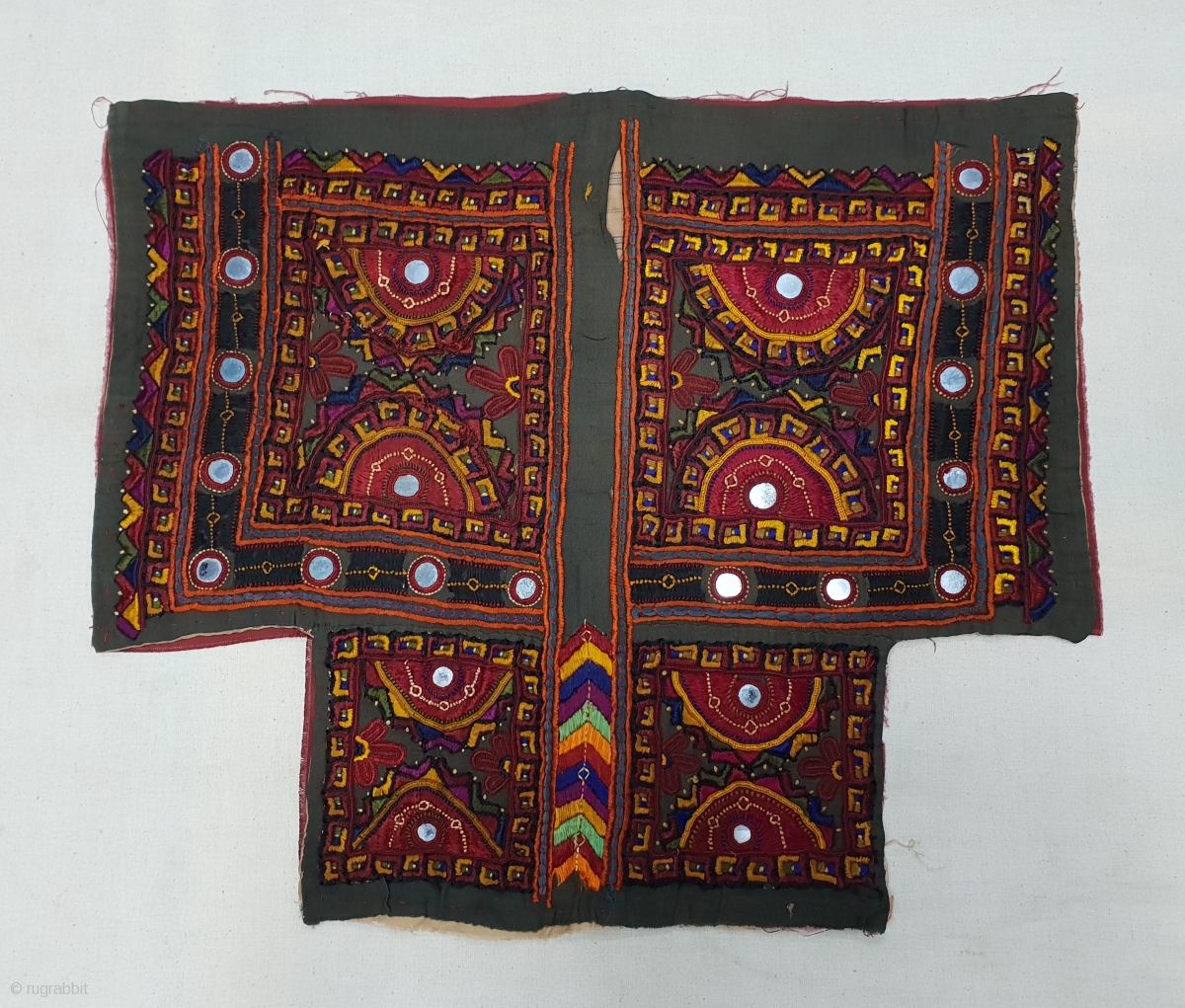 Embroidered Blouse-Front (Payti), From Sindh (Pakistan) Region of India. Cotton Inning, Silk Embroidery and Mirrors.C.1900.Its size is 36cmX42cm (163504).
