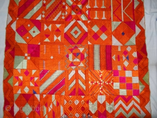 Bawan means fifty-two in Punjabi and refers to the mosaic of fifty-two different patterns which decorate this piece (the number of patterns can be at times more or less than 52).Bawan bagh (or phulkari) was in fact a display of samples used by professional embroiderers to show their skills.Its size is 125cmX240cm. C.1900.Perfect in the Condition(DSC03654 New).