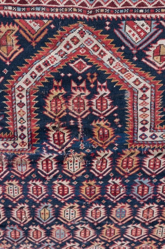 Antique Marasali Shirvan East Caucasian prayer rug, last quarter of the 19th century, all dyes natural, with some issues but still worthy...