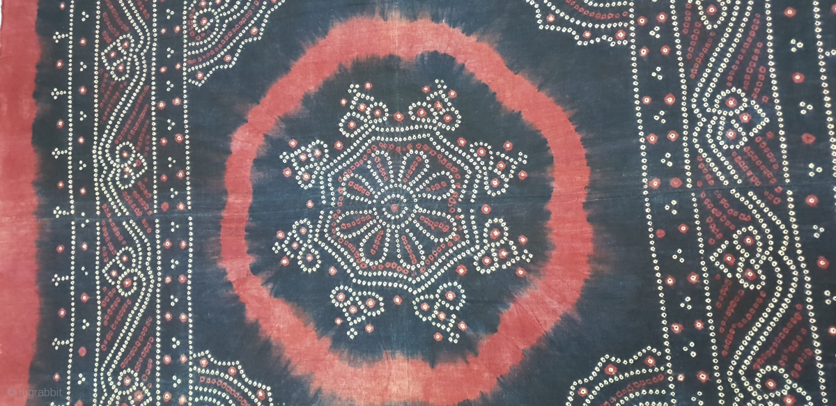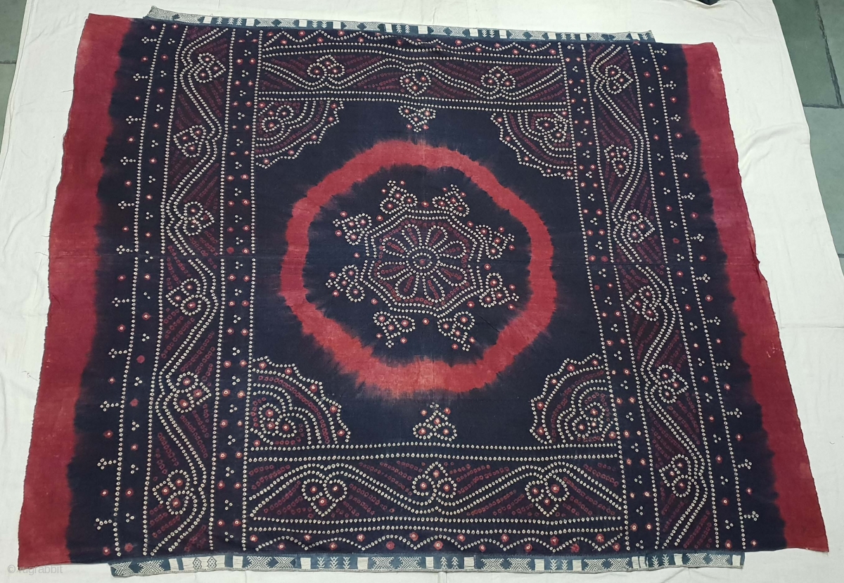 Indigo Blue, Single Bandh Tie and Dye Odhani From Shekhawati District of Rajasthan. India.Its Very rare Single Bandh Tie and Dye Odhani. Natural Indigo blue Colours On the Khadi Cotton.C.1900.Its size is 175CmX205cm(20181124_171542).