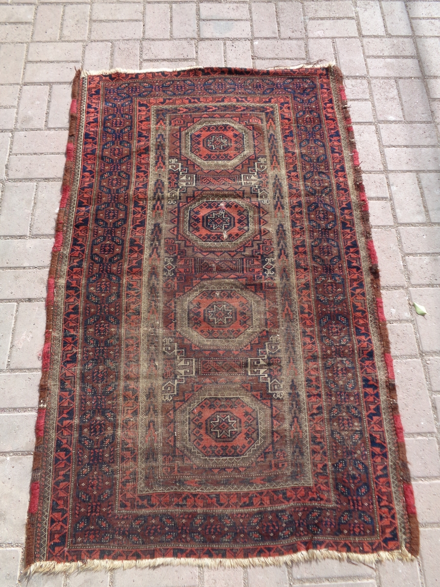 Baluch rug with beautiful colors and border,just oxidation to black,all good colors,without any work done,Size 5'1"*3'2".E.mail for more info and pics.