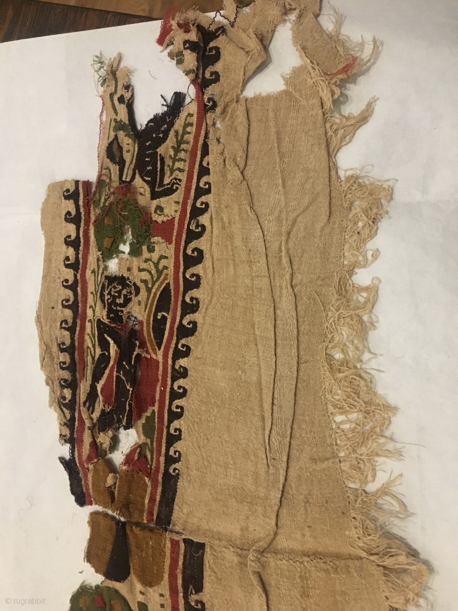 Long, narrow Coptic textile fragment with well defined figure and spotted animal....great color.