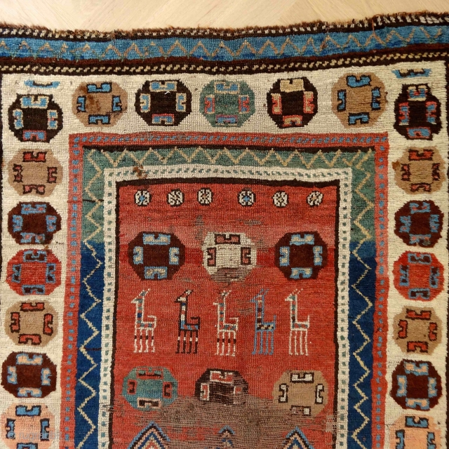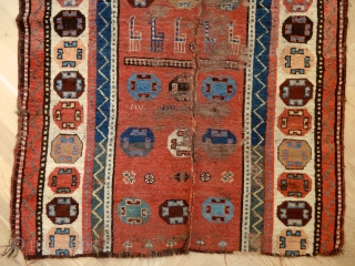 dated / 1852 Shahsavan fragment with calm archaic drawing and wonderful, harmoious palette of early colors ... soft, floopy handle. more beauties on sale: http://rugrabbit.com/profile/5160