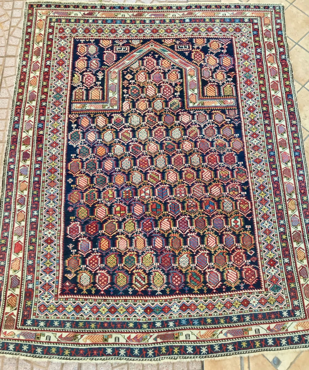 antique caucasian sirvan marasali prayer rug cm 1.50 x 1.20