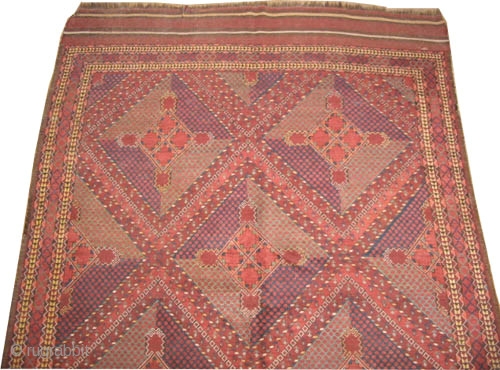High pile, good condition, the two edges are woven with 25 cm kilim ( the complete size is 566 x 205 cm), soft, high standard quality and in its original shape.