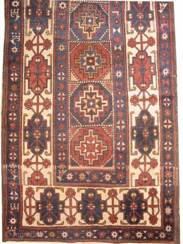 The center has Moghan design, the surrounded large border is ivory with very rare design, at the center the two medallions have slightly used pile, the rest part is in good condition, fine knotted and in its original shape.