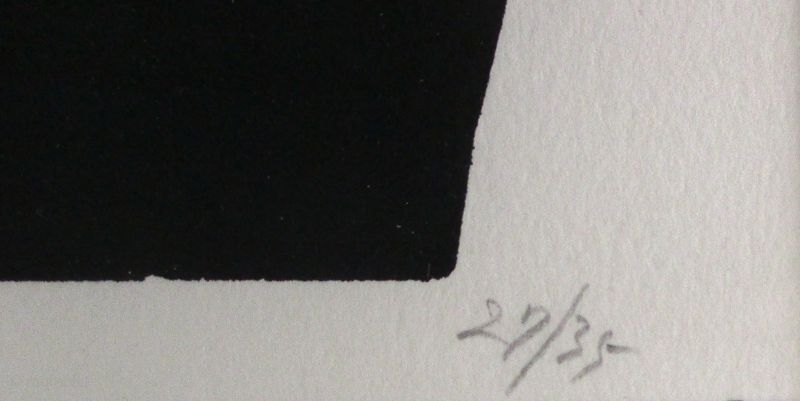 Japanese lithograph print by Toko Shinoda (born 1913) entitled "Arrived Wind". Signed in pencil. Undated. Edition number 27 of 35. Frame: 33" high x 27" wide Inside archival mat: 23 1/2" high x 17 1/2" wide