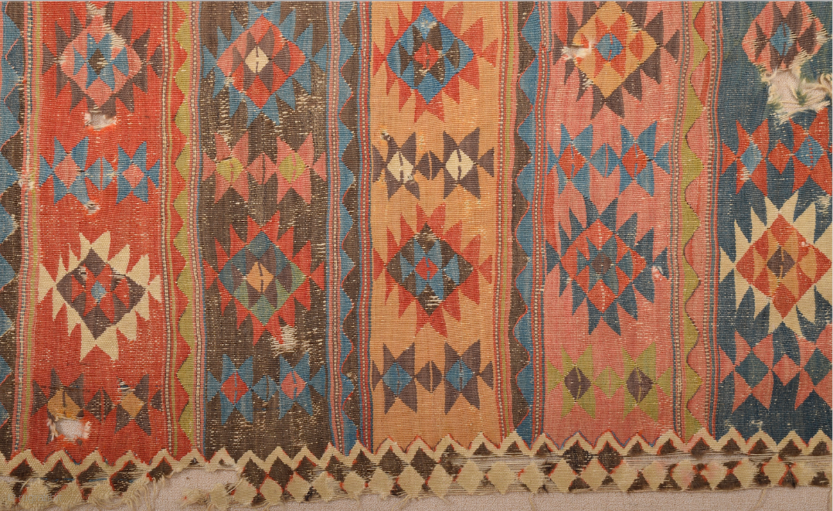 19th Century lovely colorful Shahsevan kilim. It has great colors they are all natural and deep great colors. Good condition we can say ıt has some holes you can see condition easily from images size 155 x 330 cm