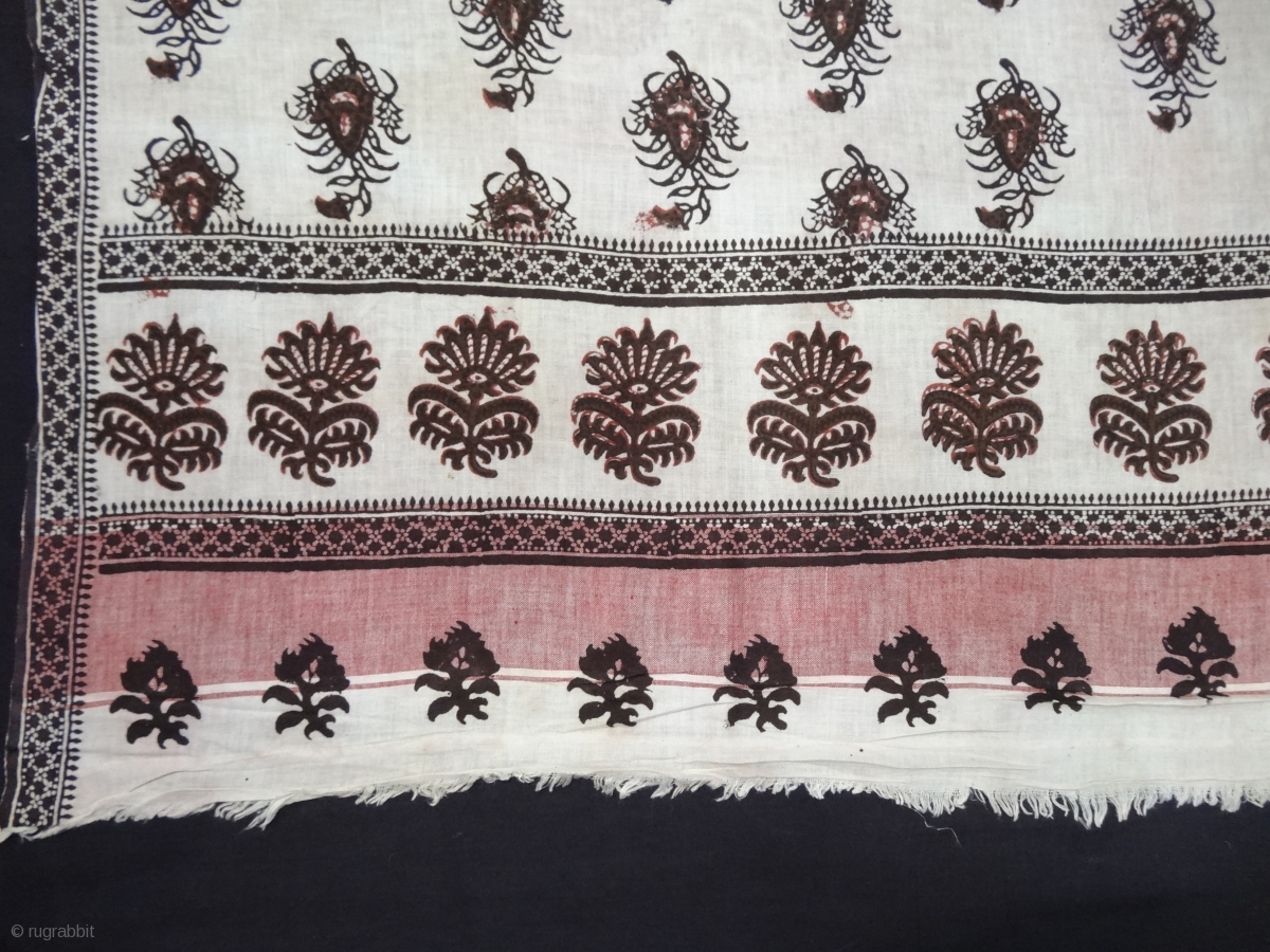 Ceremonial Odhani Block-Printed,Mordant-Dyed Cotton,From Sanganer Rajasthan, India.Its size is 100cmX172cm(DSC05234).