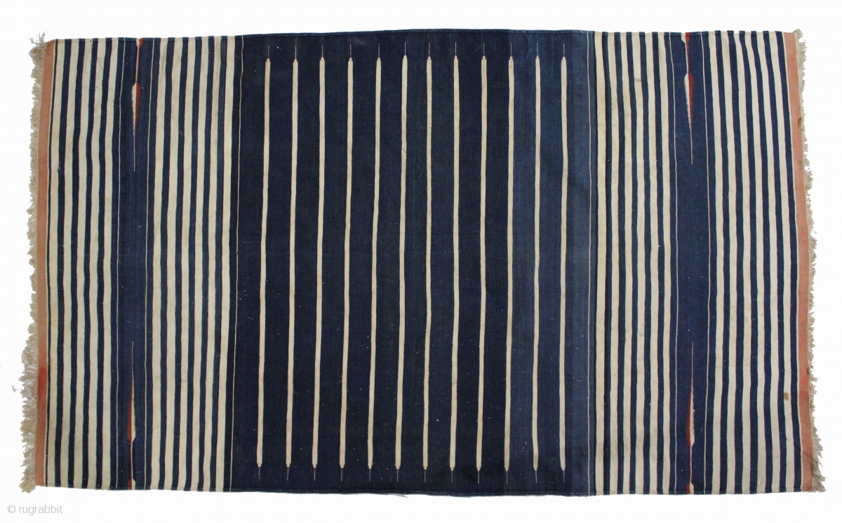 Jail Dhurrie(cotton)Natural Indigo and tightly woven From Bikaner Rajsthan India.C.1900.Its size is 110cm x 185cm.(DSL02890).