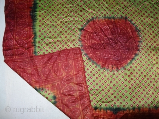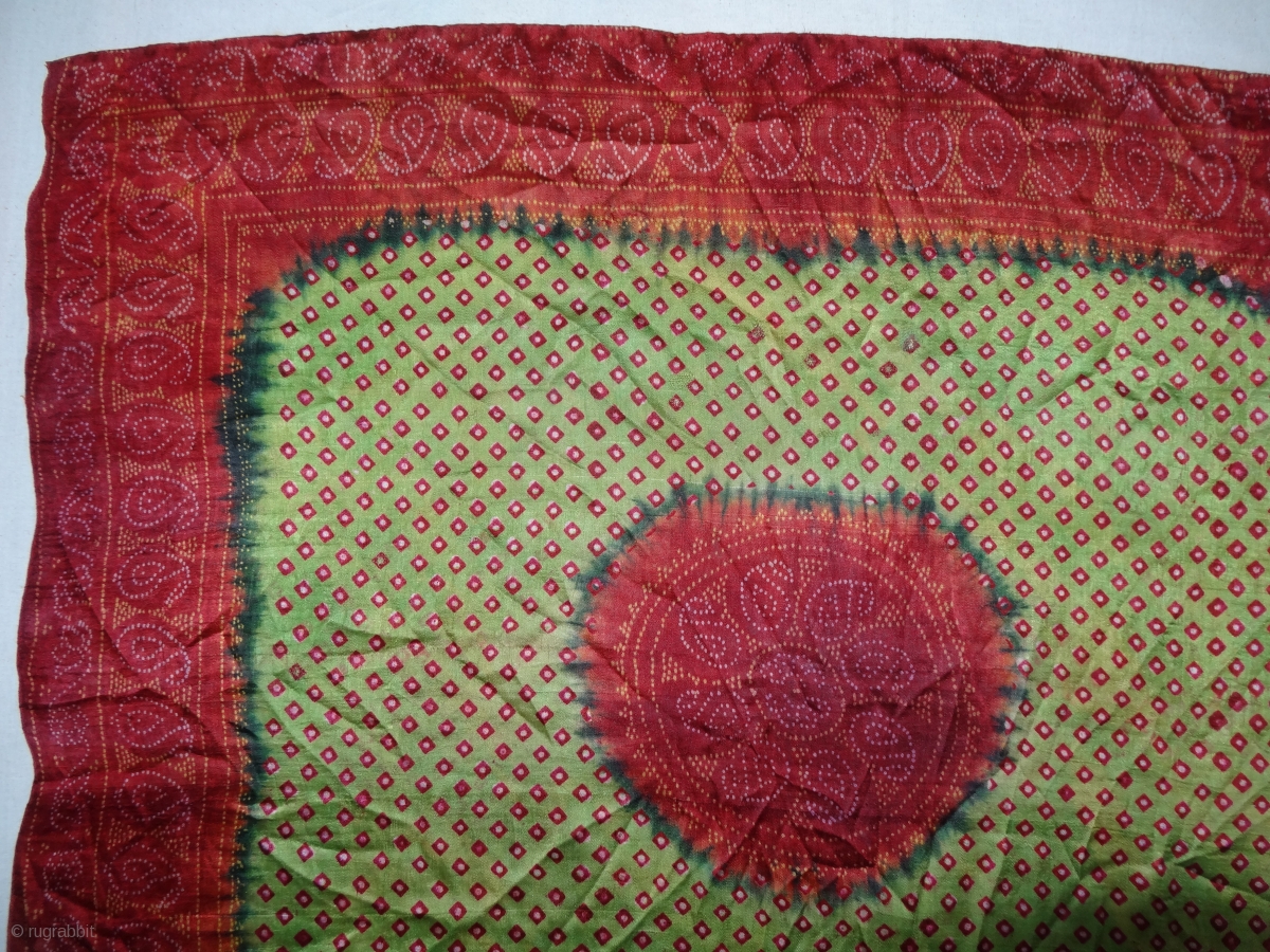 Tie And Dye Rumal, Gajji-Silk From Kutch,Gujarat, India.C.1900.Belongs Khatri Muslim dyers Community of Kutch Gujarat for there Wedding use.Its size is 61cmX70cm(DSC05419).