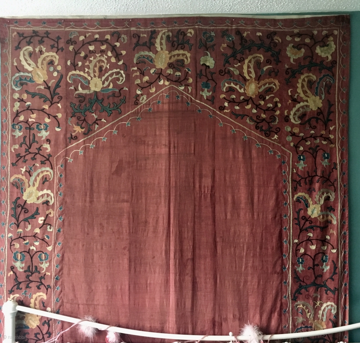 Prayer Suzani C19th Silk 236 cm by 149 cm Tapestry style lining