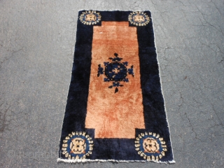 Peking Chinese, circa 1900, 2-0 x 3-9 (.61 x 1.14), full pile, good condition, hand washed, both ends old good overcasting, original sides, quarter size moth damage(pic), plus shipping.