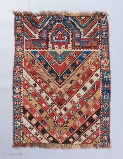 An authentic Caucasian village prayer rug with lovely color and very good age. This one's got some zest!! Please ask for more info.