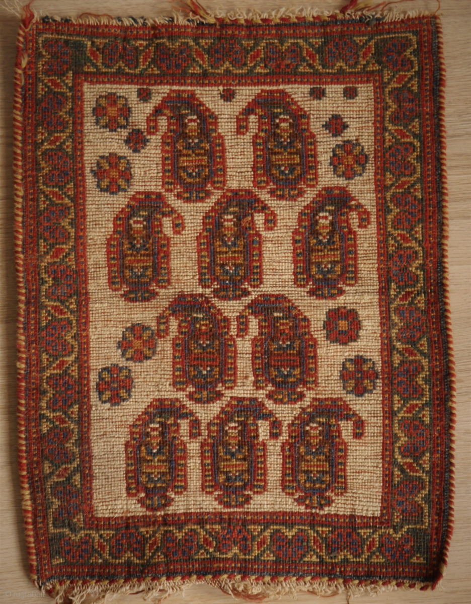 Unusual botteh bag face, Persian (could be of a Bakhtiari chanteh) fine weave, natural colors in good condition. parts of kilim remaining.