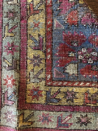 Ver Old prayer, measures 3'-6" x 5'-3". Respect to its age, does have some condition problem.