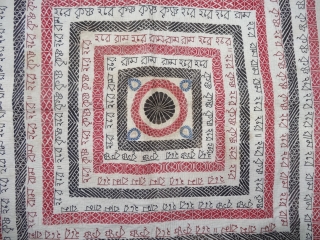 Rare calligraphy Kantha,(Mansion As Ram-Ram, Krishna-Krishna ,Hari-Hari) Cotton plain weave with cotton embroidery, Probably From Ramnagar District, West Bengal(India)Region. India.C.1900. Its size is 95cmX95cm(DSC05898).