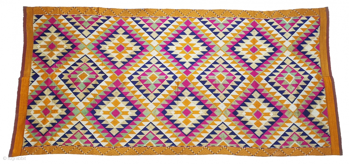Phulkari From West(Pakistan) Punjab.India.Known As Panchrangi Bagh With Rare influence of Shisha Design with beautiful colour combination of Panchrangi Colours,C.1900.Very Rare kind of Phulkari(20190511_154603).