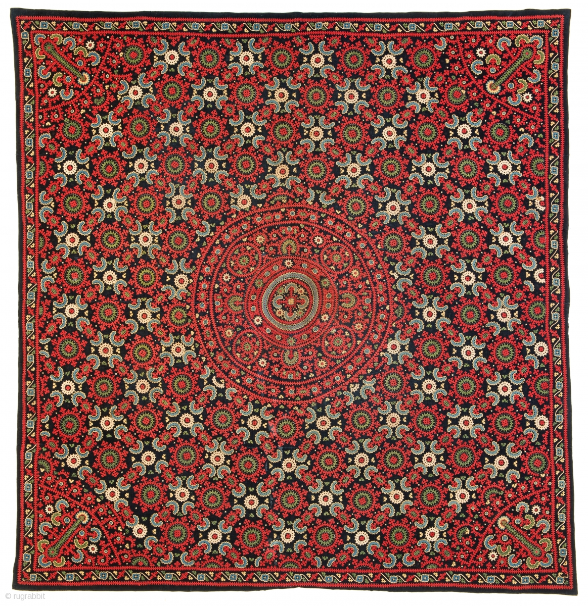 Armenian Embroidery, 200 x 189 cm (6 ft. 7 in. x 6 ft. 2 in.), Armenia, 19th century, Condition: excellent, Provenance: Siawosch Azadi, Starting bid € 800, Auction May 18th at 4pm, https://www.liveauctioneers.com/item/71359925_armenian-embroidery