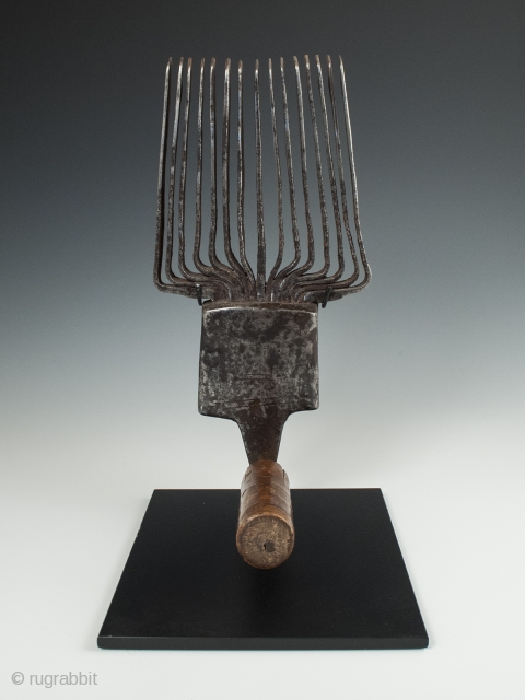 Weaving comb (panja), Morocco. Iron, wood, 11" (28 cm) high by 5" (12.7 cm) wide by 6" (15.2 cm) deep. Late 19th to early 20th century.