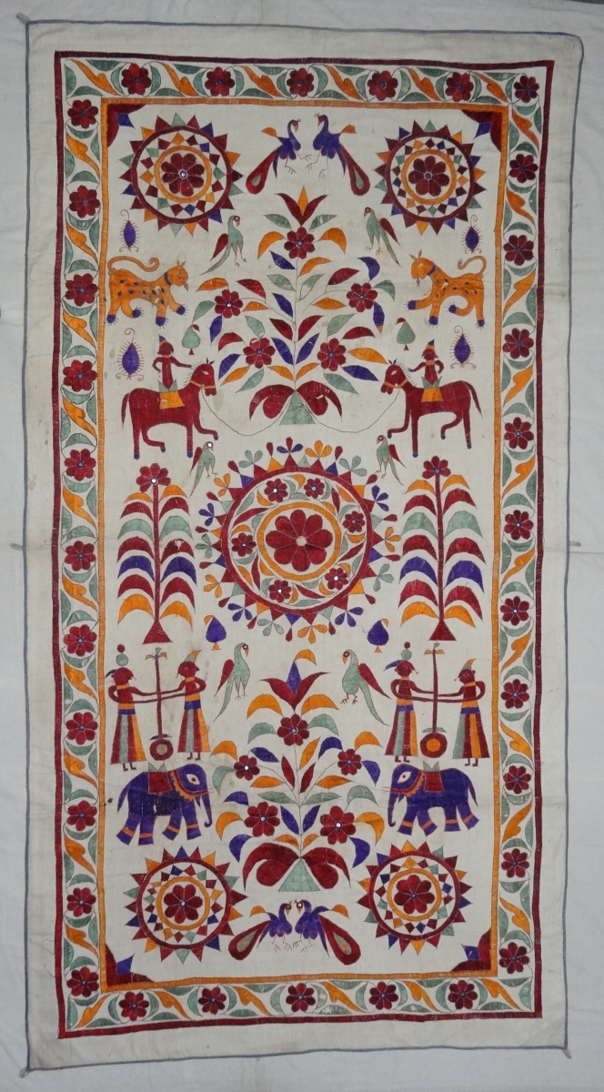 Dharaniya Wall Hanging From Saurashtra Gujarat. India.This were Traditionally used mainly by Kathi Darbar Group of Saurashtra Gujarat .C.1900.Its size is 120x226cm(DSC05960).
