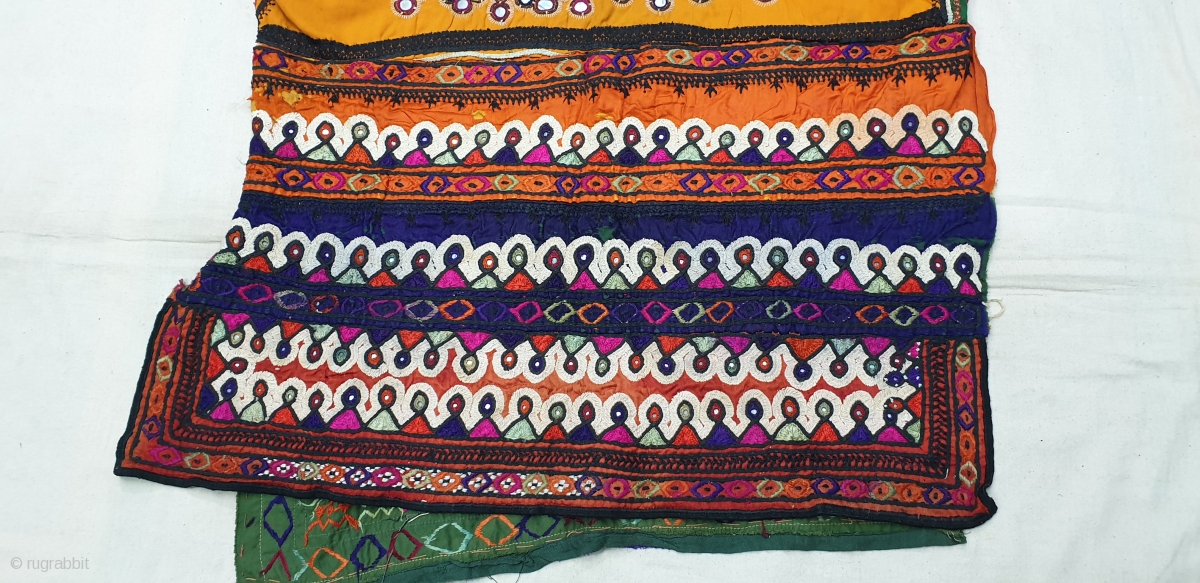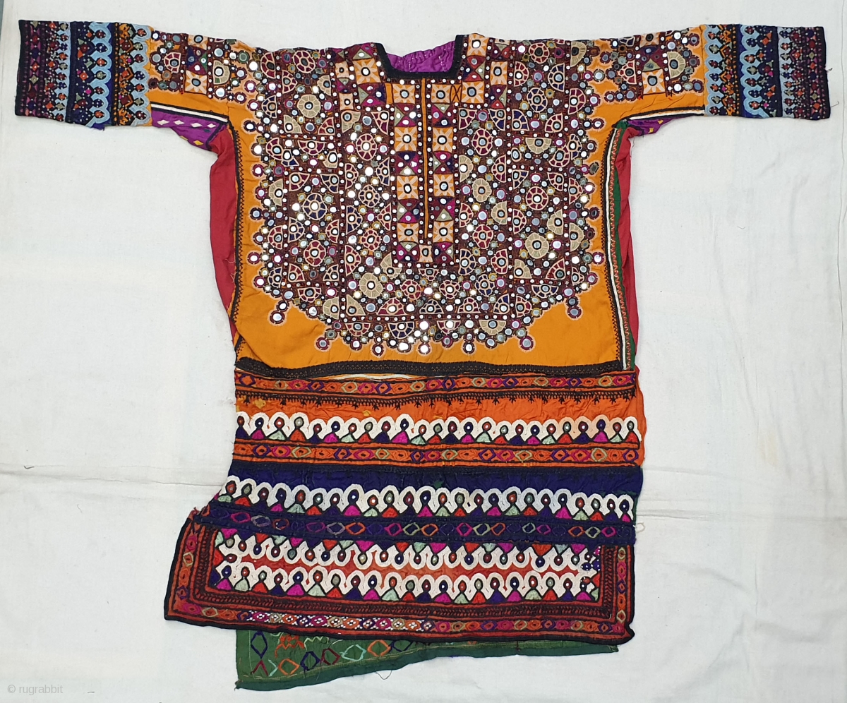 Woman’s Tunic (Chola or Gajj),From Thano Bula Khan , Sindh Region Of Pakistan. India. This were traditionally used mainly by Burfati Group of Thano Bula Khan, Dadu. Sindh Region.Silk Embroidered With Silk, Sequin and mirrors .Its Size is W.58cm,L-84cm,S-16X30cm (20190525_153712).